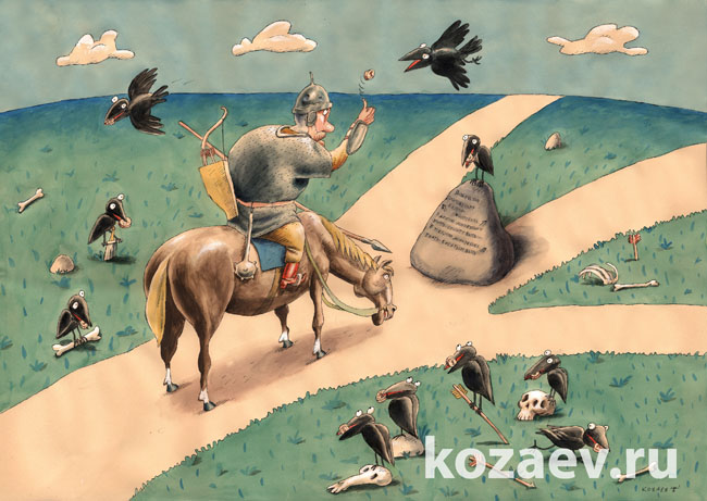 Карикатуры карикатура темур тимур козаев cartoon caricature temur kozaev витязь на перепутье вороны Knight at the Crossroads Crows