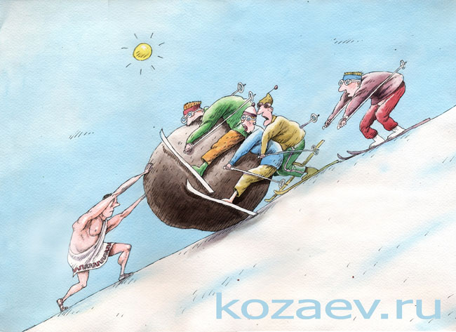 Карикатуры Сизиф и лыжники Sisyphus and skiers карикатура темур тимур козаев cartoon caricature temur kozaev